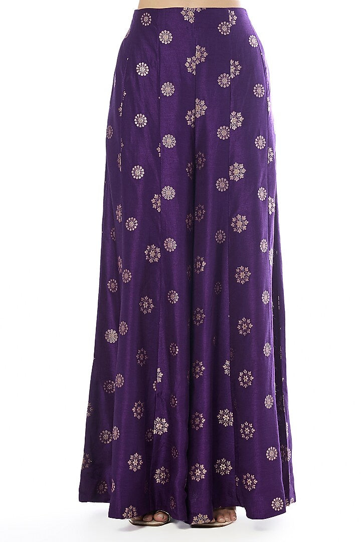 The ensemble features a sleeveless V-neck blouse richly embellished with intricate embroidery that adds a luxurious shimmer to the outfit.The pants are adorned with delicate motifs all over, creating a graceful and flowy silhouette.